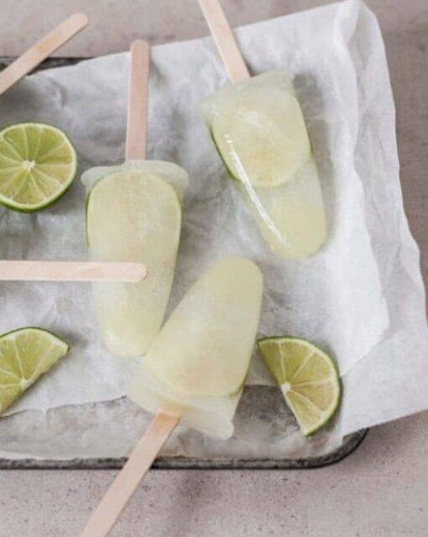 mix – pour into your moulds over the lime slices – put in freezer for at least 3 hours