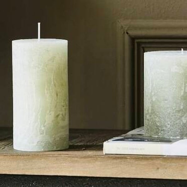 Deze rustieke Stompkaars Pillar in een prachtige mintgroene kleur is een echte eyecatcher in je woning. Gemaakt in een mix van paraffine en stearine, zorgt deze kaars voor een warme en gezellige sfeer. De kaars heeft een diameter van 7 cm en een hoogte van 13 cm, en is voorzien van een subtiel gegraveerd detail aan de onderkant. Een must-have voor elke kaarsenliefhebber!