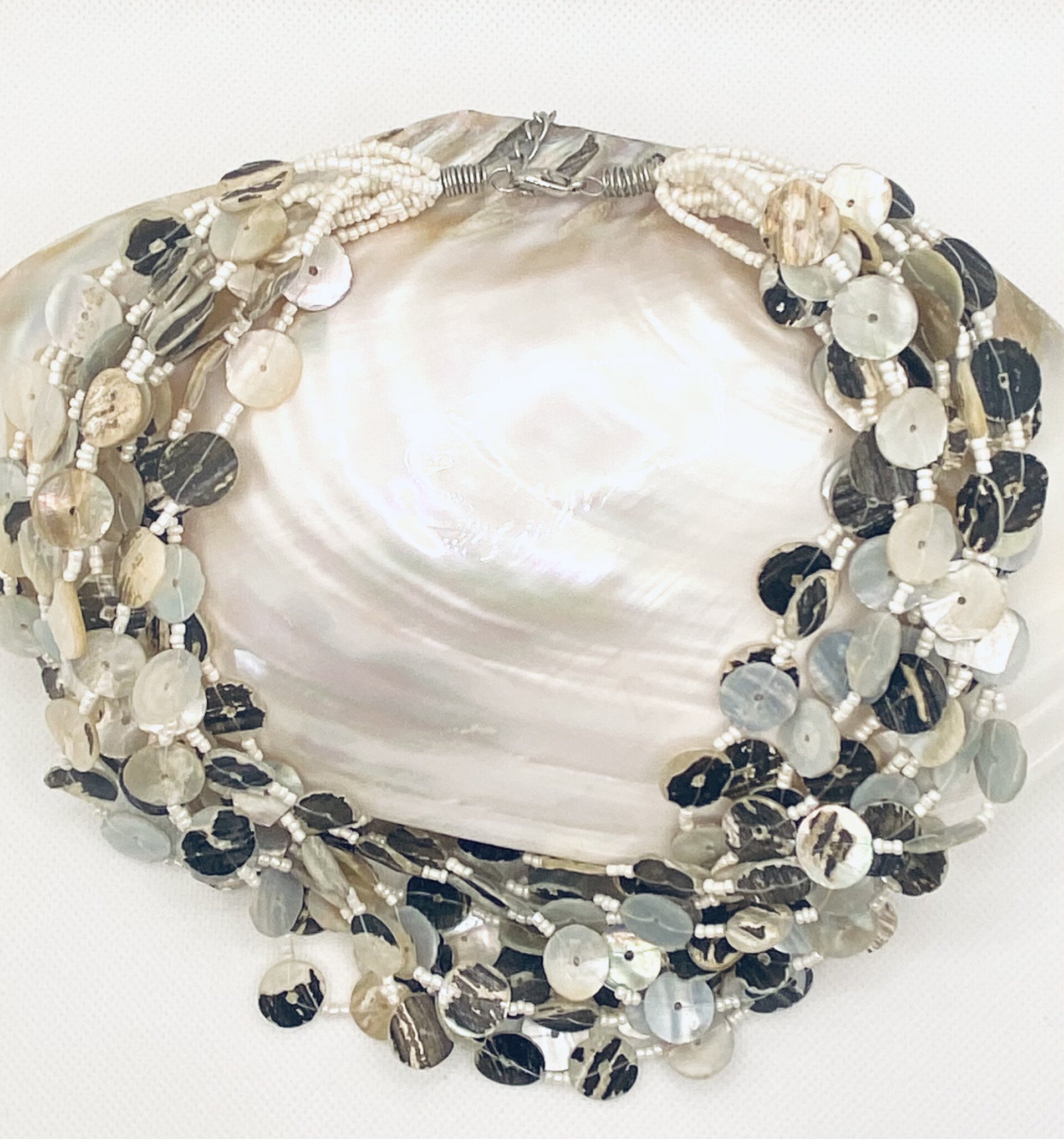 Opgelet: De juwelen zijn gemaakt van parelmoer schelpenmateriaal. Het zijn organische materialen van levende wezens, die allen een andere vorm, maat, kleur, ... hebben. Ze zijn perfect door hun imperfectie, endus omvatten ze soms kleine krasjes, vlekjes, barstjes, scheurtjes, oneffenheden, lengteverschillen... Het doorleefde karakter maakt elk juweel enig & uniek. Holaz kan jou extra foto's bezorgen of je kan deze persoonlijk komen bekijken in onze Conceptstore te Kontich of Oostduinkerke.