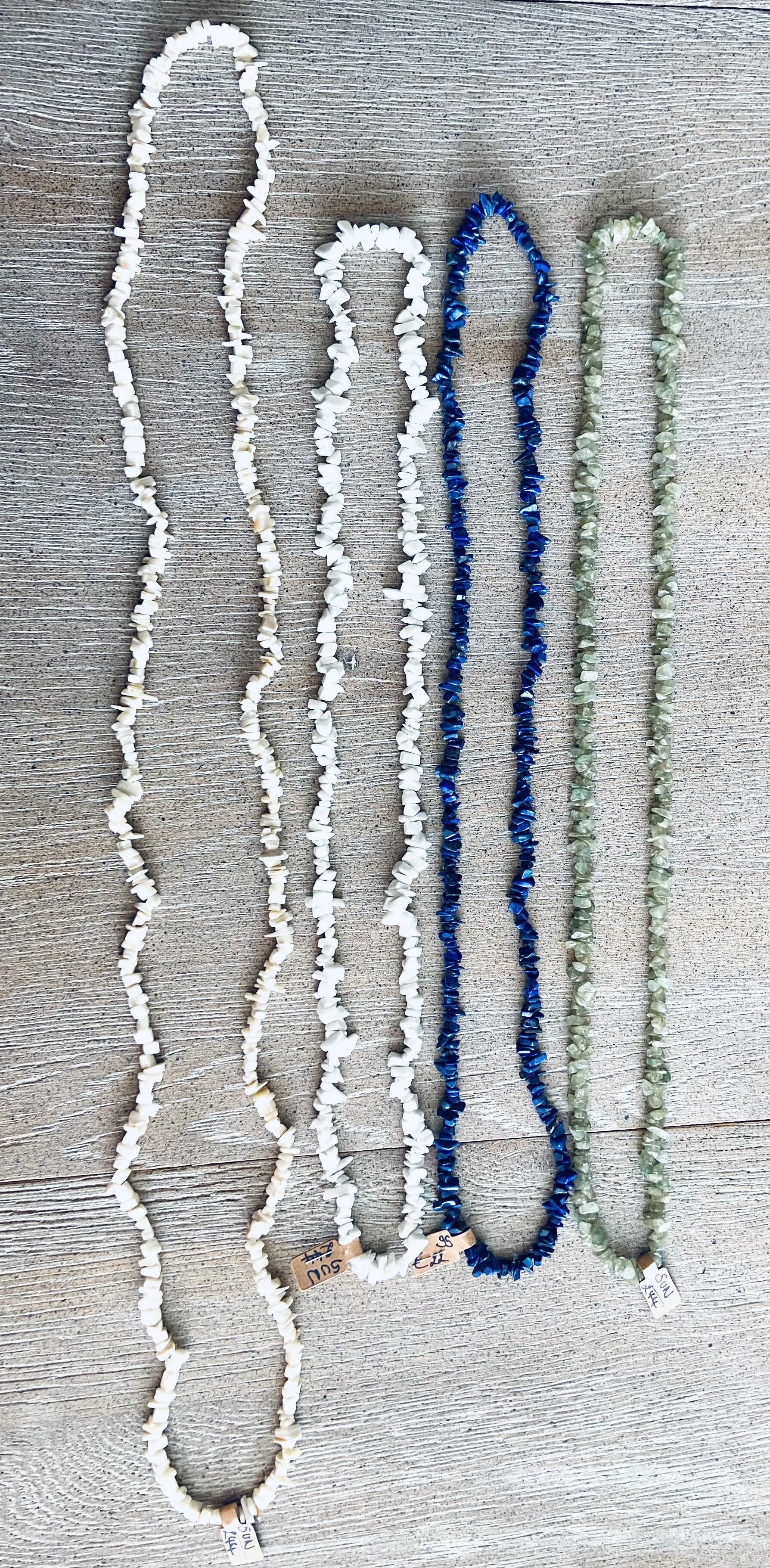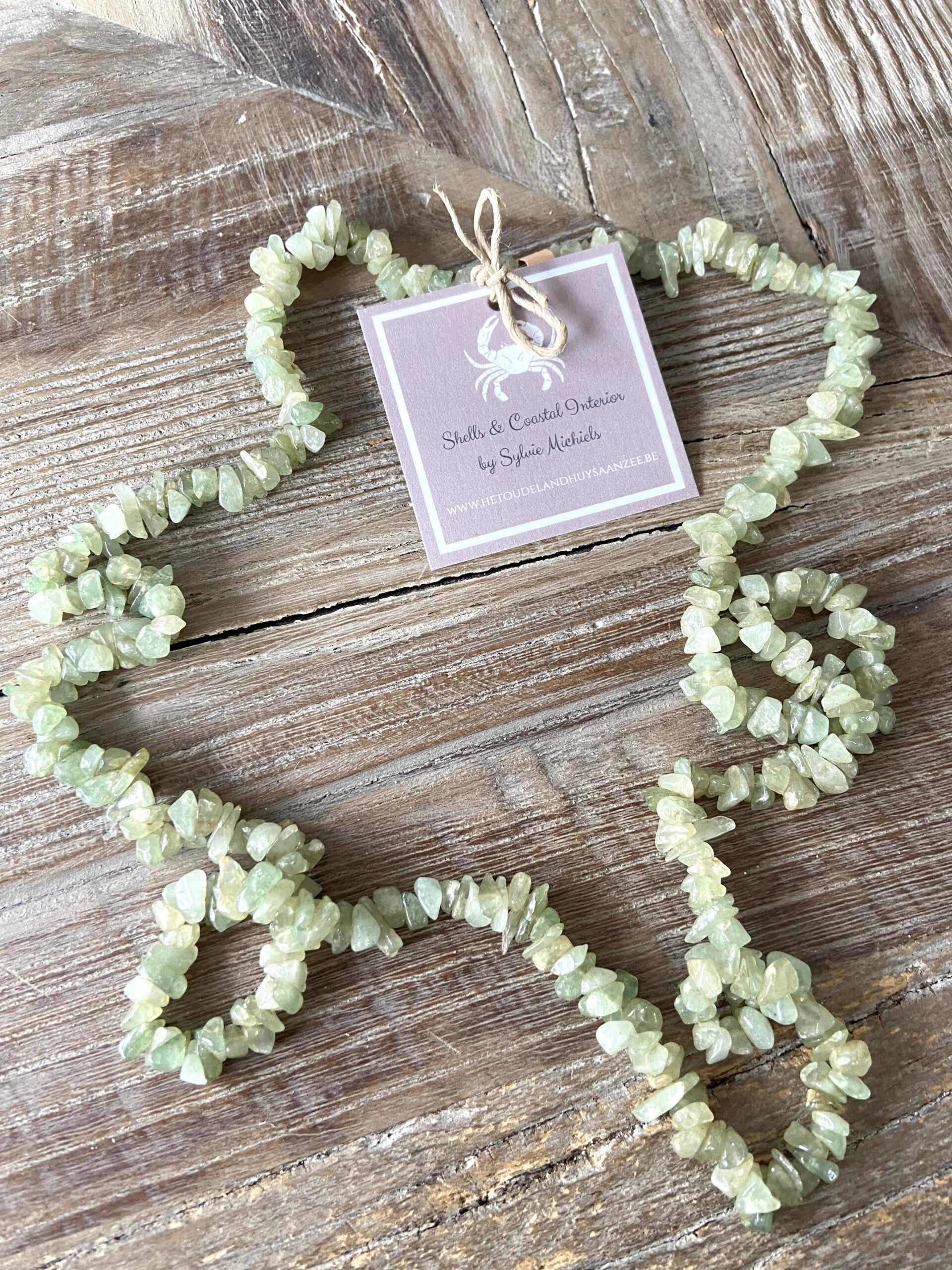 Schitterende organische schelpenketting in één stuk met stukjes steen, lijkend op koraal.