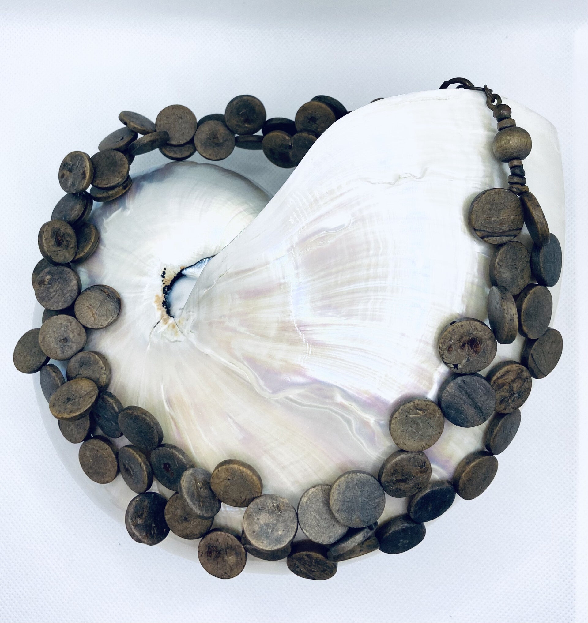 Deze Seychelles Organic Island Treasures-reeks is handgemaakt met hout en/of schelpen vanuit de Indische Oceaan met zijn 115 kleine eilandjes op 455 km2. Deze juwelen geven een prachtige weerspiegeling van wat je kan vinden in het turquoise water en de riffen rond deze eilanden.