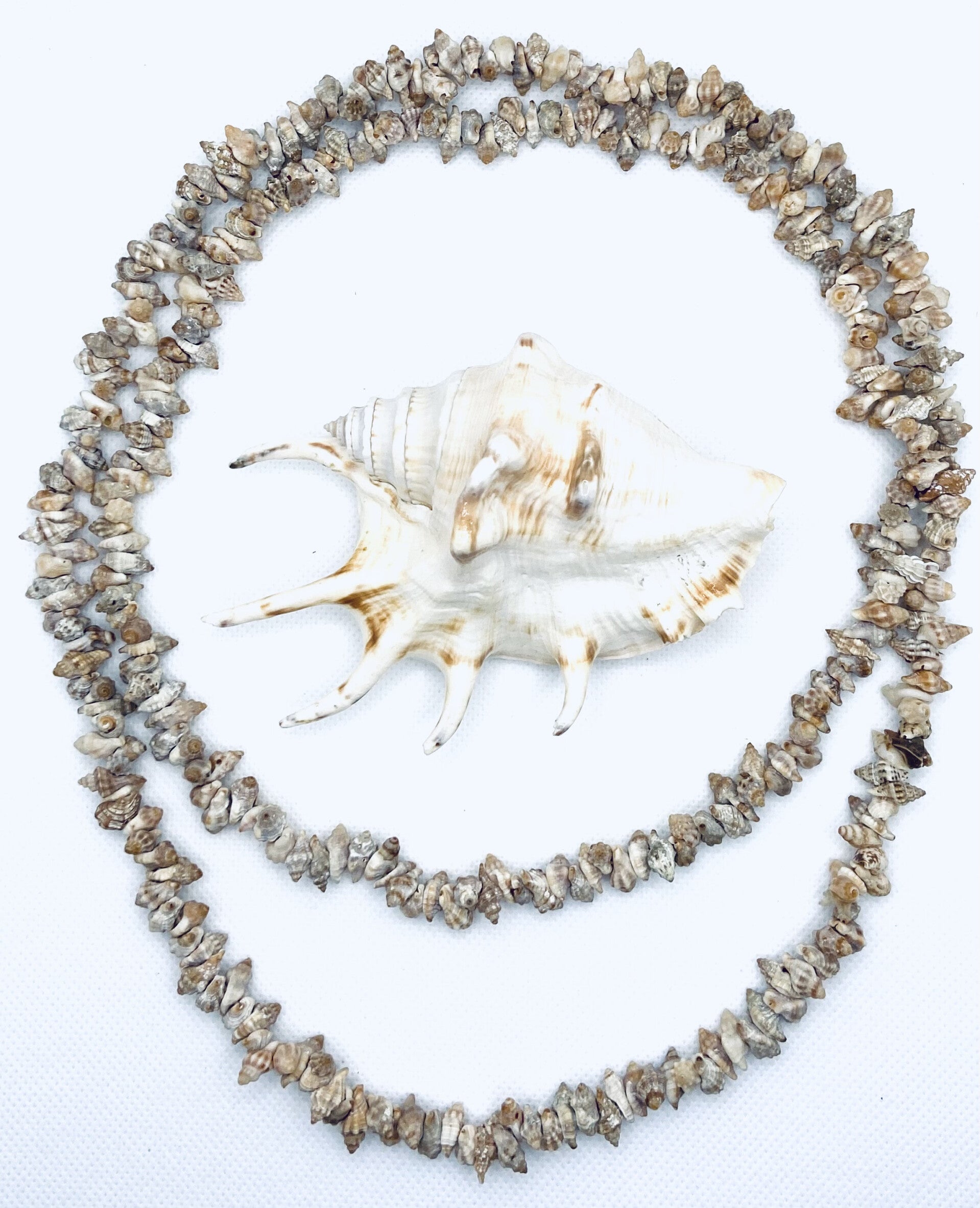 Deze halsketting uit één stuk bestaat uit aaneen gerijgde mini Toornschelpjes.