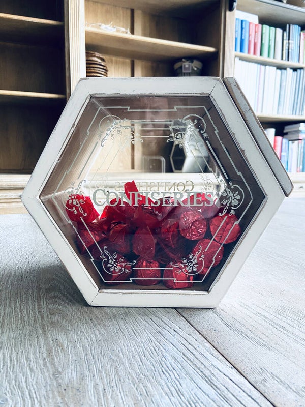 Zeer leuke ouderwetse hout/glazen Confiserie potten, die je doen terugdenken aan de gezellige kruidenierswinkels met oude snoeppotten van vroeger.