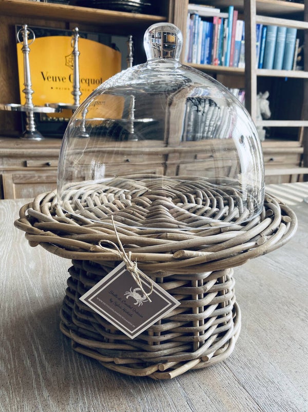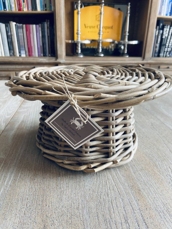 Prachtige landelijke taartschaal of presenteerschaal volledig in grijze wicker ! Een uniek stuk voor al uw (tuin)party's en etentjes. Zeer leuk om te combineren met een glazen stolp.
