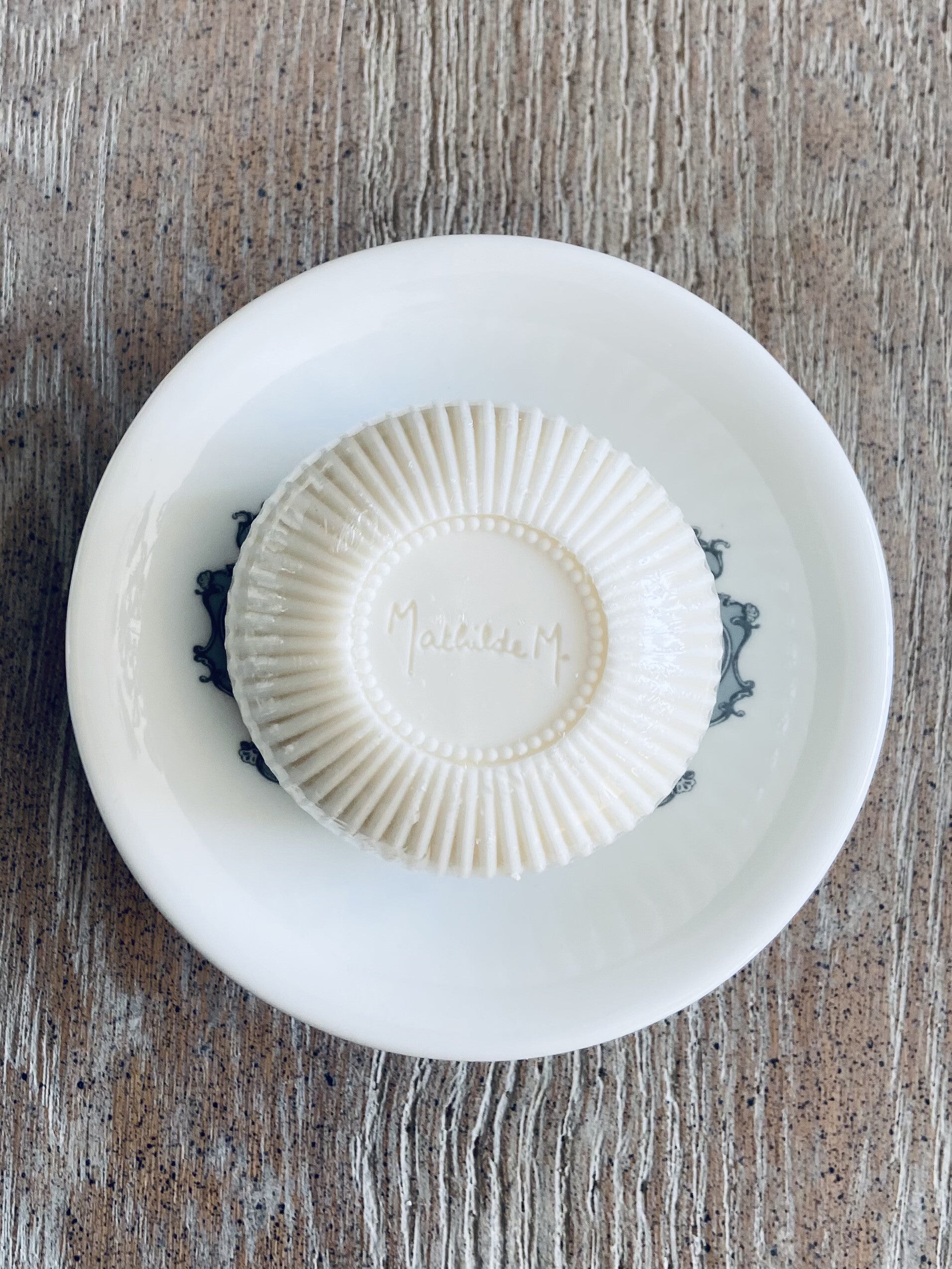 Witte ronde badkamer-accessoires "Paris Parfums de France" om uw badkamer een echt welnessgevoel te geven !
