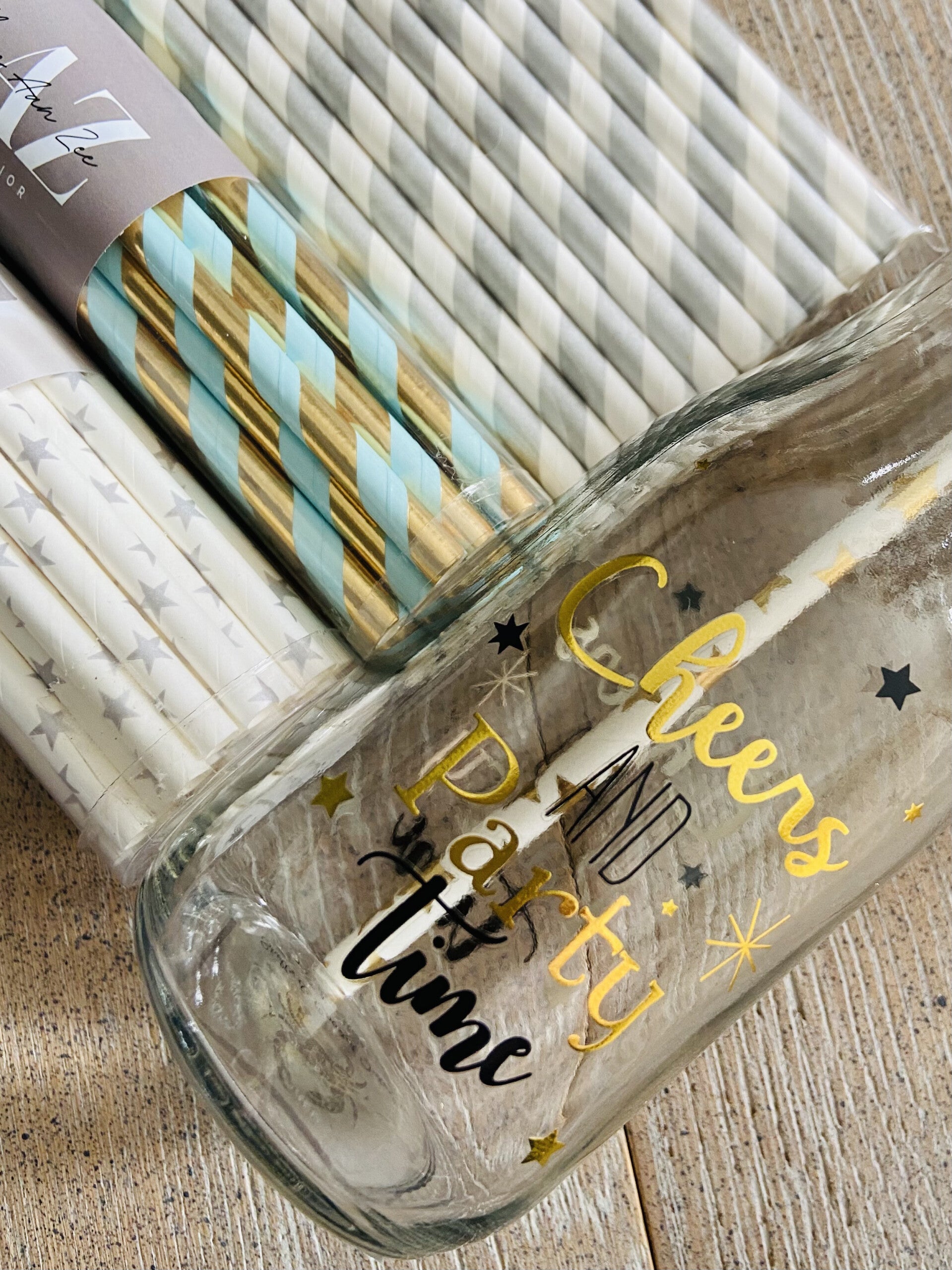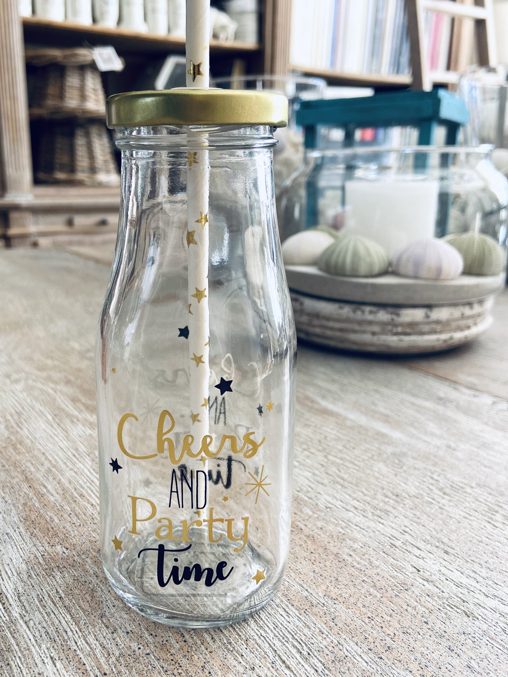 Gouden Party Flesje met Rietje (AQU-812)