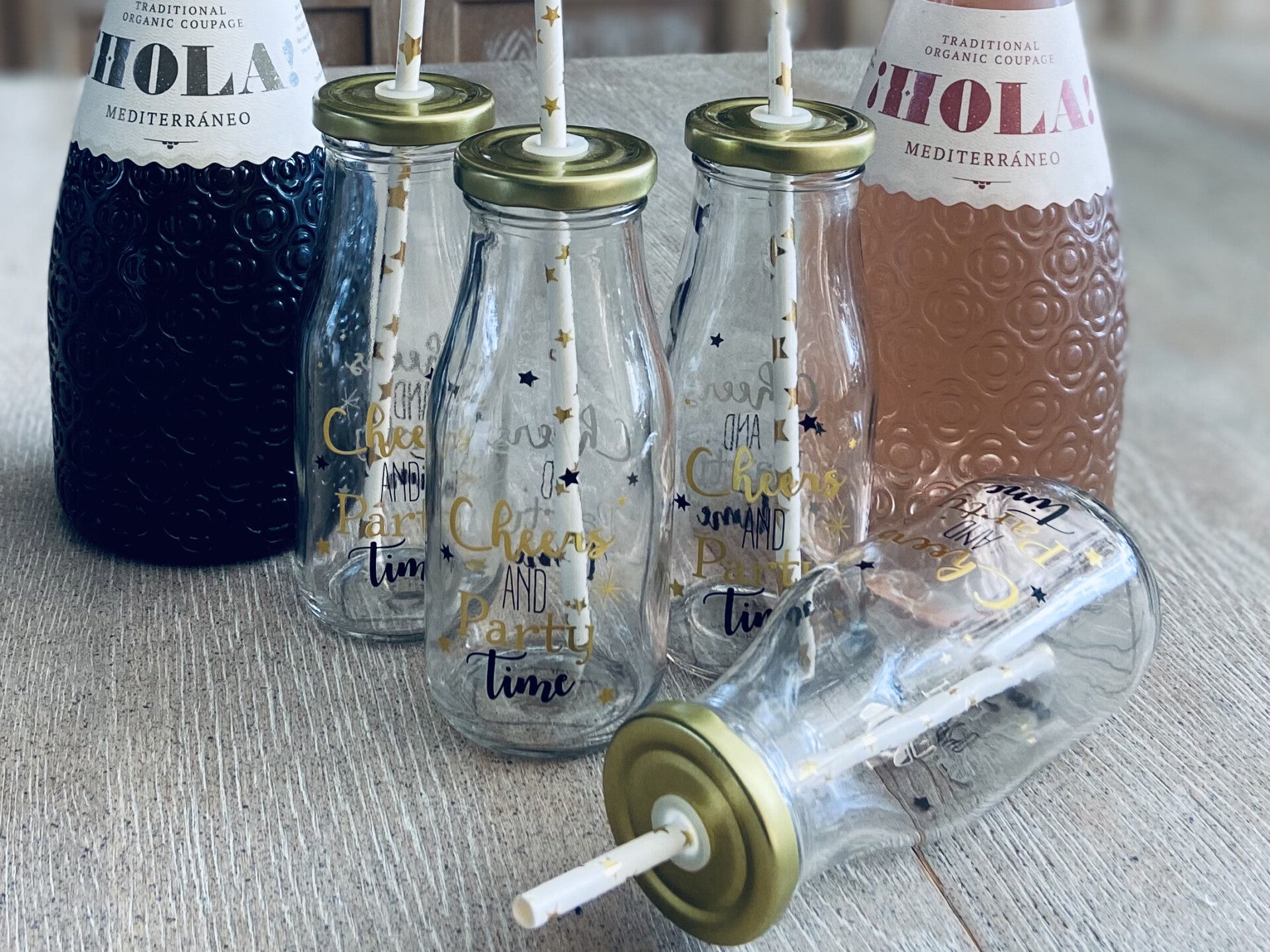 Zeer leuke fancy party flesjes met shiny gouden opdruk voor alle komende (tuin)feesten en bbq's, ideaal om de insecten van alle lekkere drankjes weg te houden.