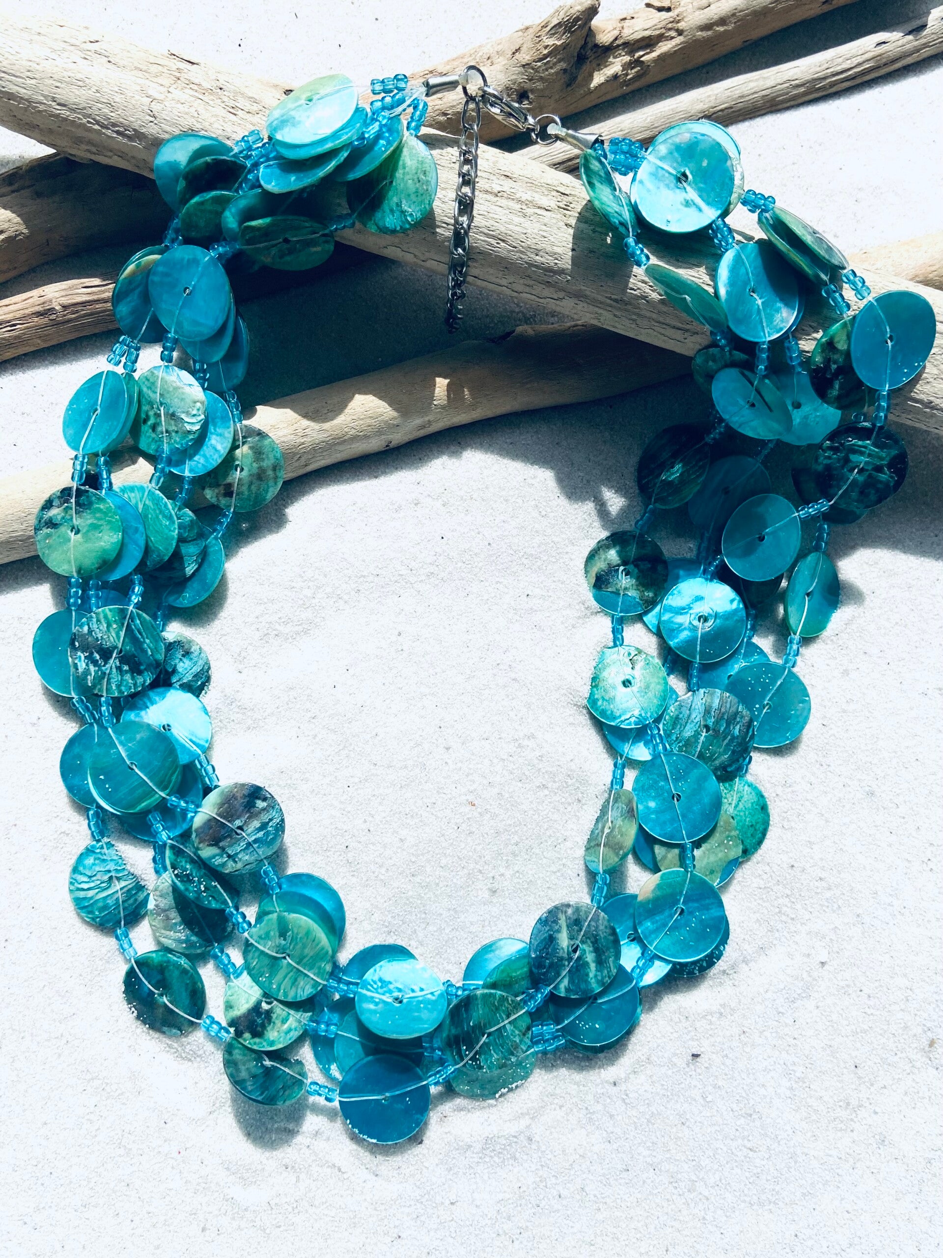 Deze exclusieve collectie Bora Bora is handgemaakt uit schelpen. Het aantal geknoopte rijen schelpenknopen vormt de dikte van uw halsnoer en staat aangeduid per exemplaar.