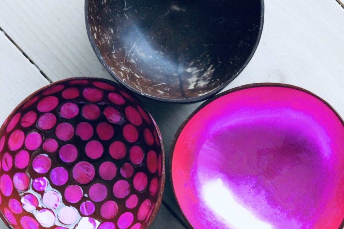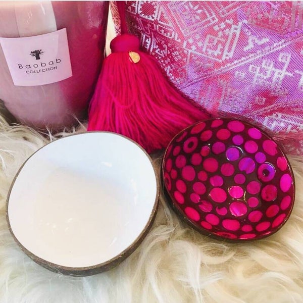 Prachtige Coconutbowls in de meest inspirerende BOHO Ibiza zomerkleuren. Je kan ze gebruiken om hapjes te serveren (Only dry food Proof), als decoratie, om iets in te bewaren of te presenteren, om cadeau te geven, ... Schoonmaken met een vochtig doekje, niet onder water...