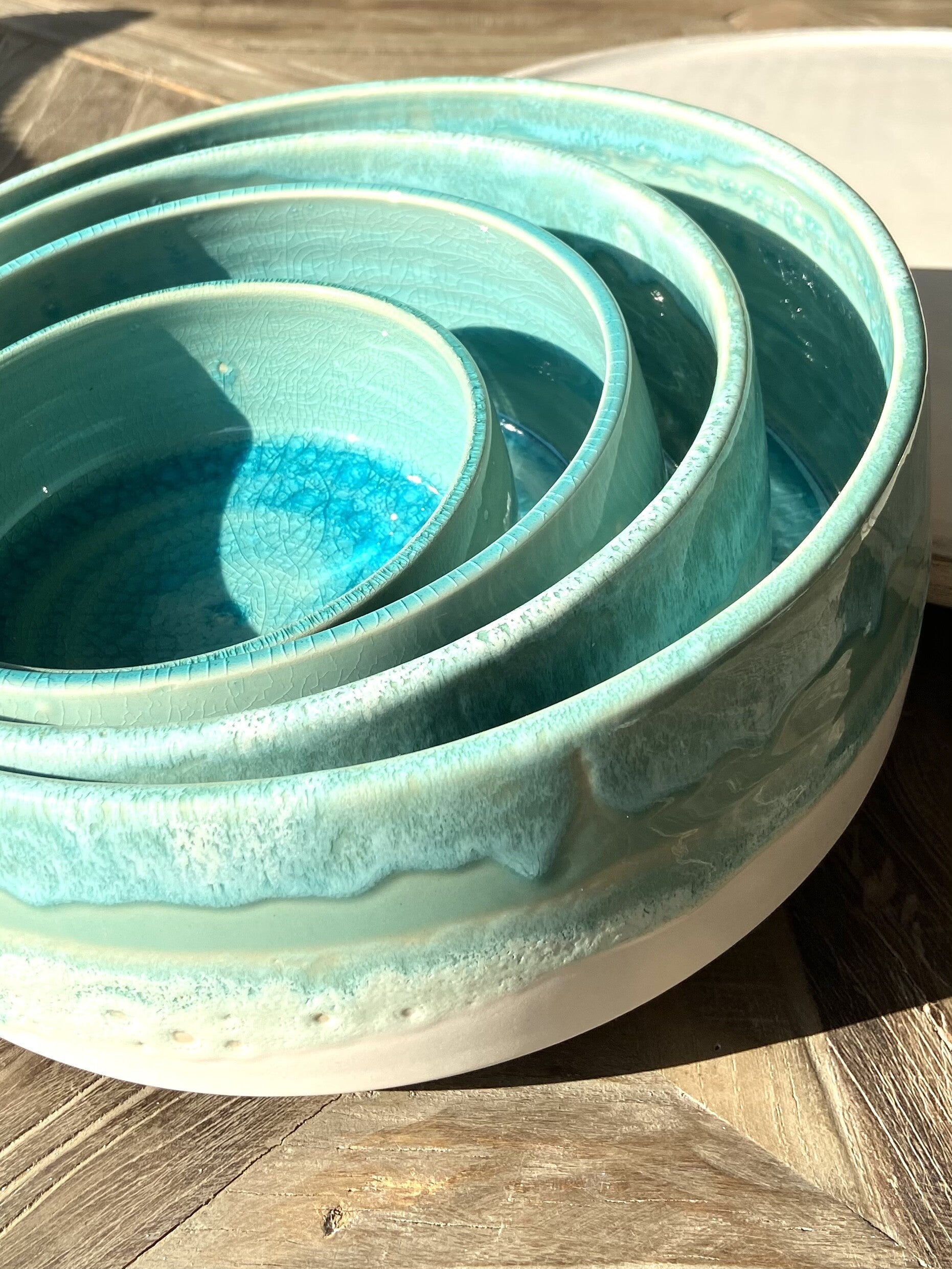 Je kan deze turquoise-blauwe kommen komen bekijken in onze Conceptstore in Kontich en Oostduinkerke of tijdens HOLAZ opendeurweekends.
