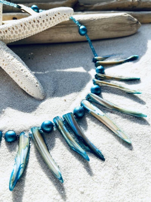 Lengte: 45cm - Kleur: Parelmoer turquoise