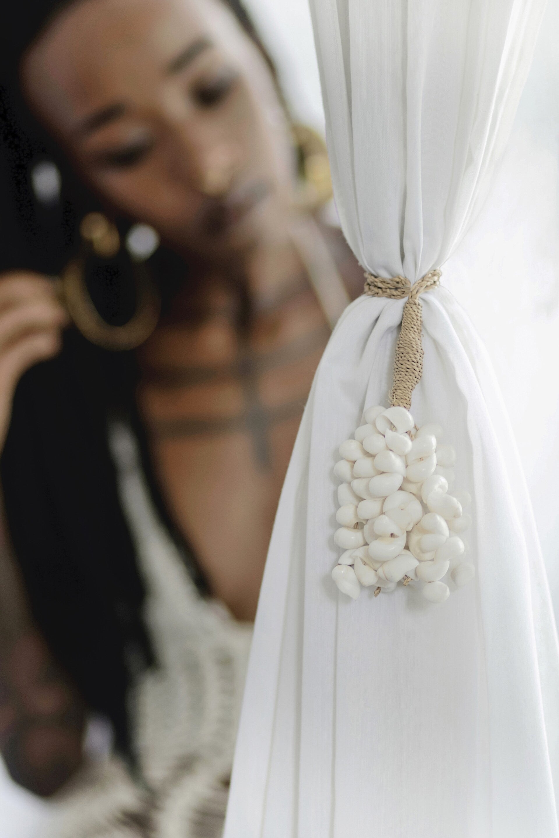 Prachtige handgemaakte schelpenhanger uit Bali bestaande uit een cluster van vele witte schelpjes. Deze hanger geeft uw interieur onmiddellijk een Coastal en Boho Chic gevoel. Knap als decoratie !