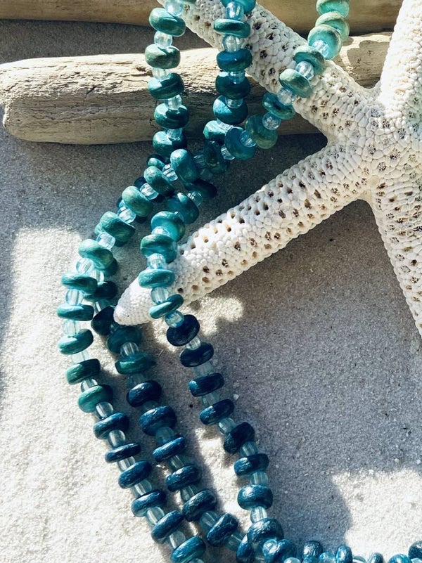 Deze Zanzibar Island Treasures-reeks is een speelse exclusieve HOLAZ-reeks, handgemaakt uit houten kraaltjes... Deze juwelen in blauw, groen of turquoise geven een prachtige weerspiegeling van wat je kan vinden in het turquoise water rond Zanzibar.