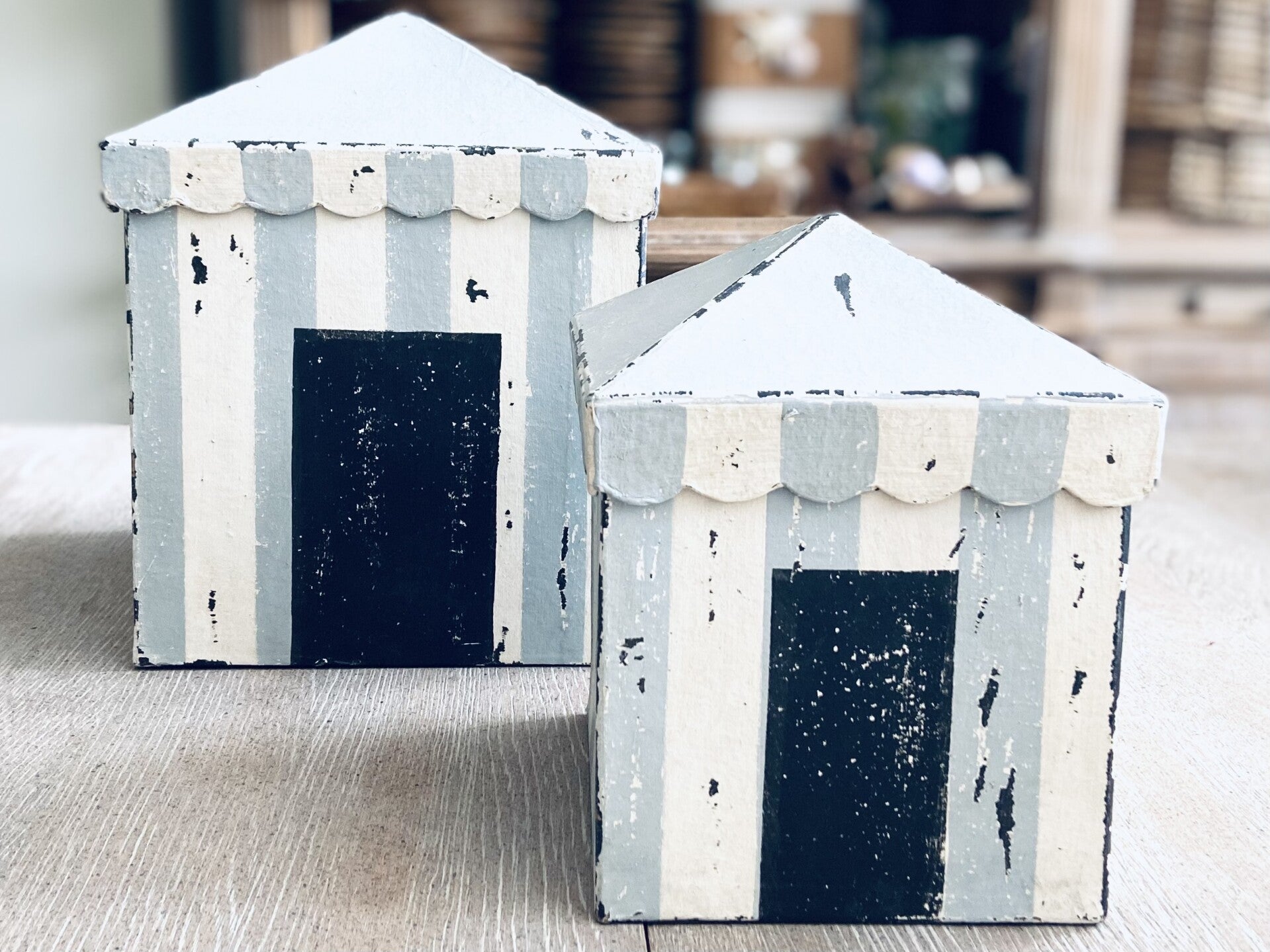 Zeer leuke kartonnen strandhuisjes van Pomax. Verkrijgbaar in klein en groot model.