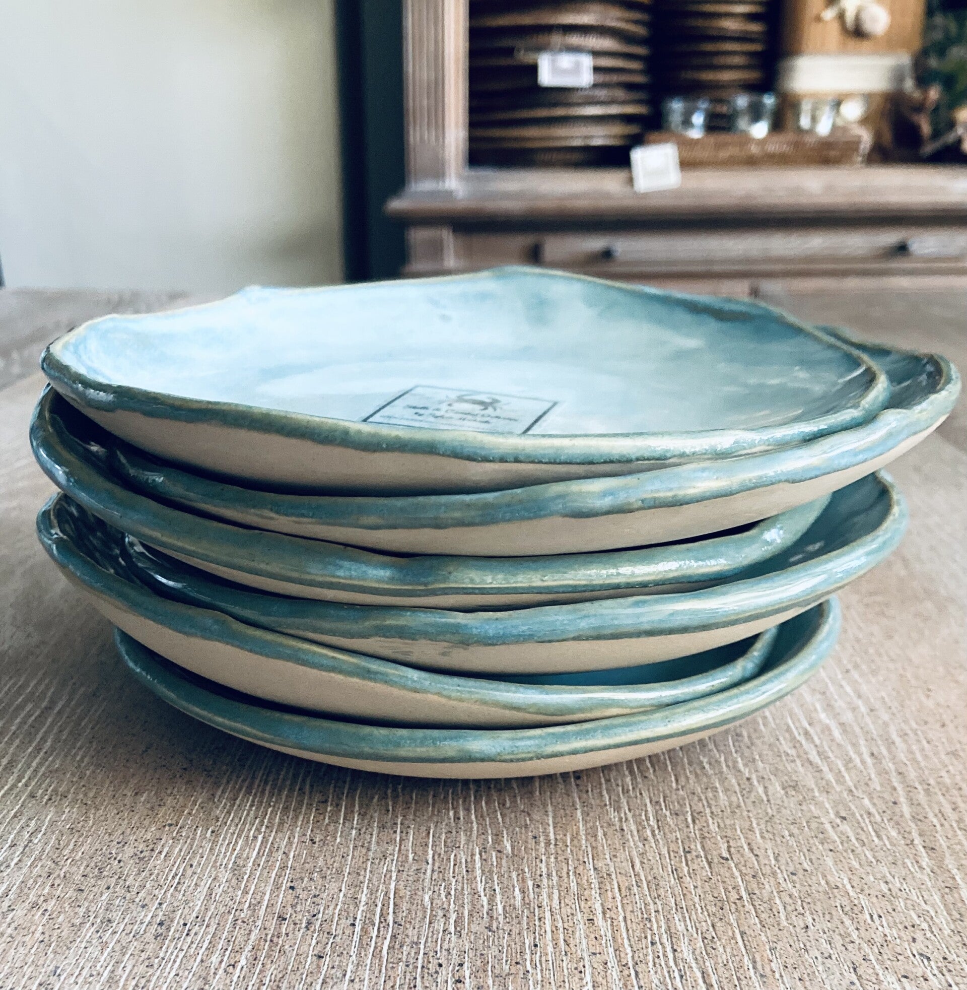 Turquoise Keramiek bordje in organische vorm - 17,5cm