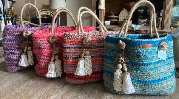 Zeg nu zelf, hoe prachtig zijn deze ? De gehaakte Ibiza (hand)tassen uit jutte en katoen zijn volledig Vlaams handgemaakt. Wat is HOLAZ hier trots op ! En het zijn unieke stukken ! Nooit 2 exact dezelfde exemplaren.