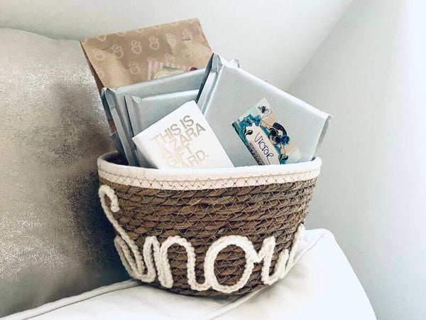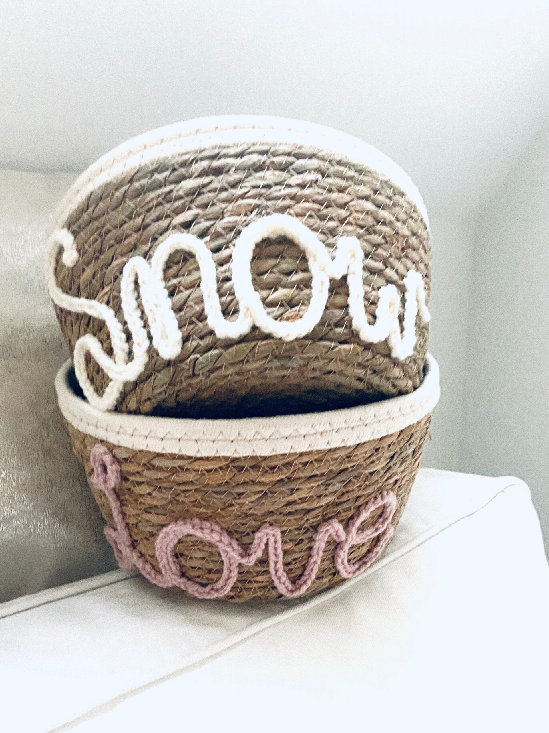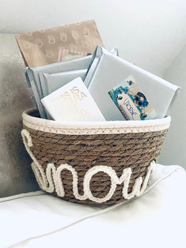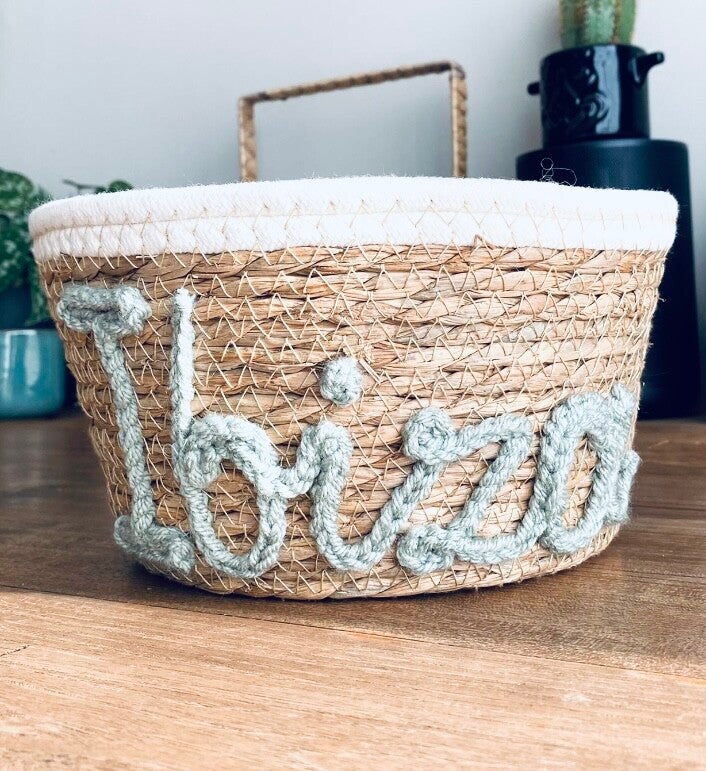 Prachtige (met de hand) geborduurde mand met witte boord. Deze is gemaakt uit ecologisch materiaal. Kan dienen als badkamer-, cadeau-, brood- of brunchmand... De mogelijkheden zijn oneindig, wij kunnen hier uw geschenken inpakken.