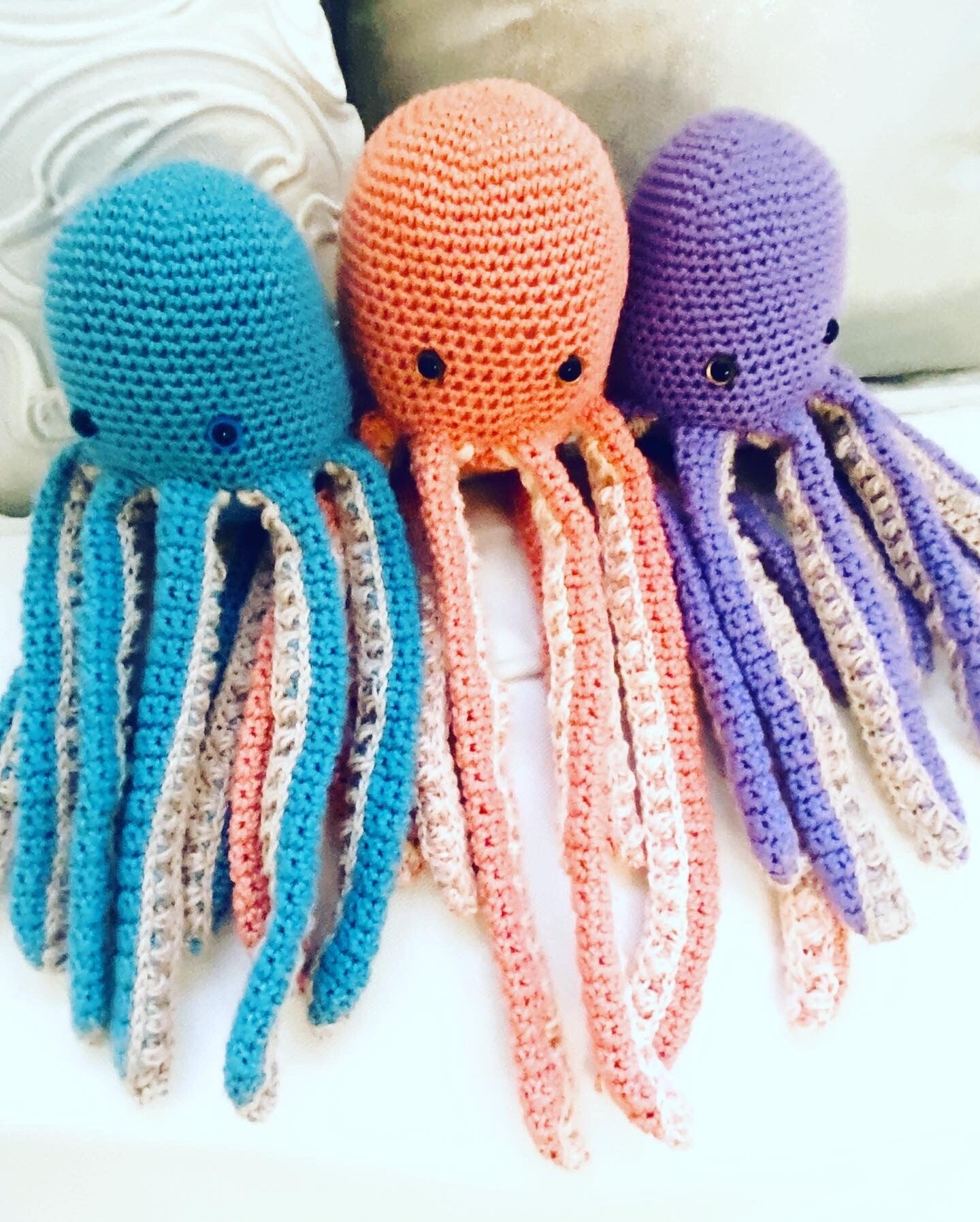 Mega schattige handmade gehaakte zeedieren, volledig baby-en kindveilig: oogjes zijn verankerd en kunnen niet los komen, kan volledig gewassen worden op 40°c in de wasmachine.