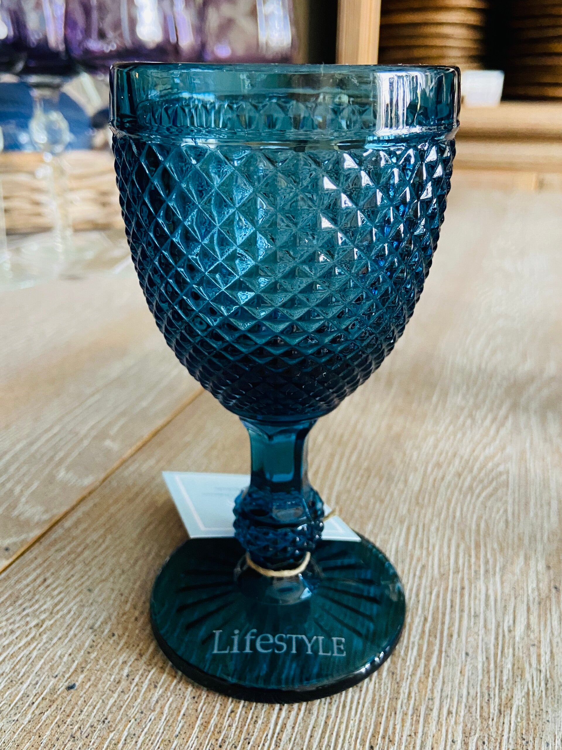 Zeer leuke wijnglazen van Lifestyle in blauw glas !